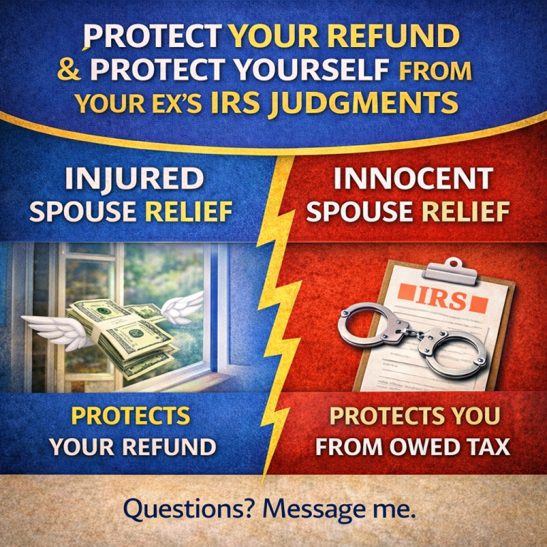 Marriage doesn’t always mean sharing tax consequences forever. If you are separating, divorcing, or concerned about a spouse’s past tax problems, it’s important to understand what protections are available before filing.